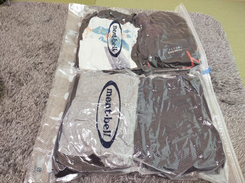 衣類圧縮袋などを使えば、防水と荷物の圧縮が出来て一石二鳥。
